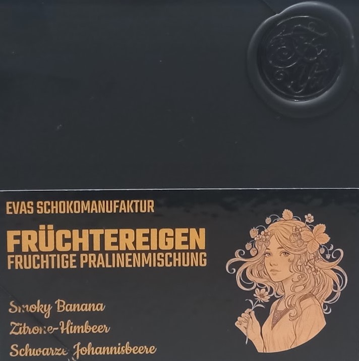 - Schwarze Johannisbeere: edle Zartbitterschokolade verbindet sich mit den unverwechselbar herben Aromen der schwarzen Johannisbeere