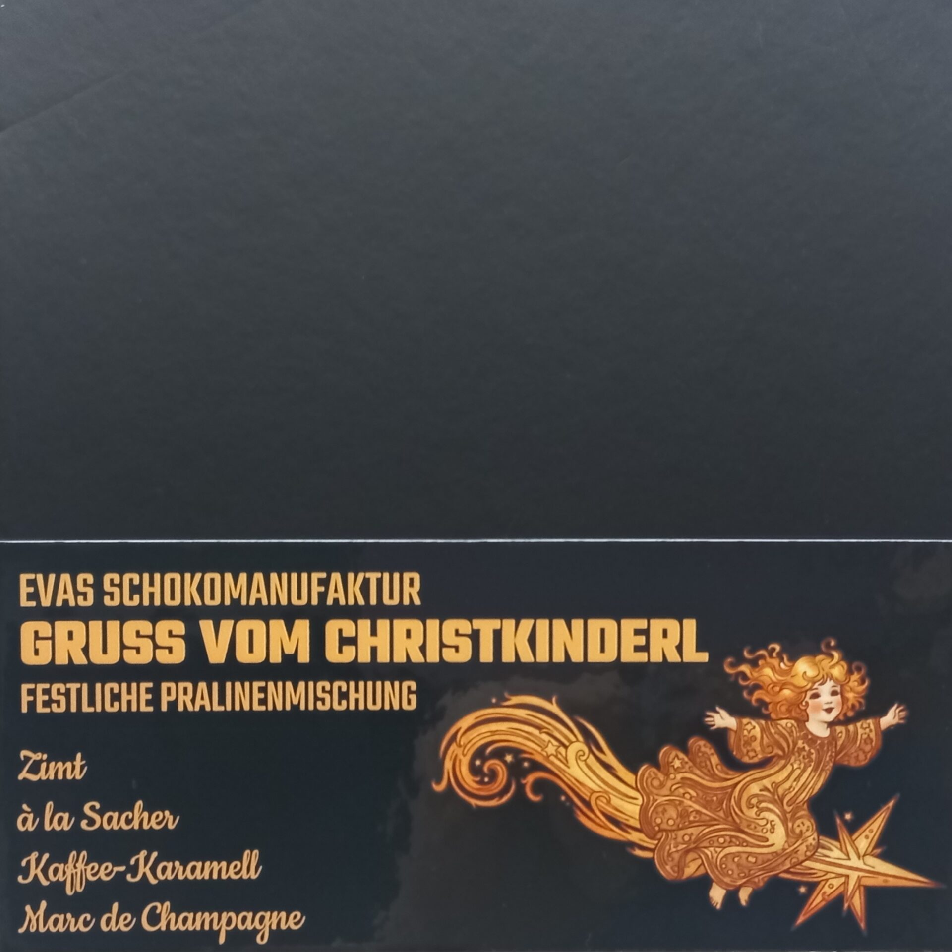 Du möchtest einem ganz besonderen Menschen ein Geschenk vom Christkinderl überbringen lassen, dem kleinen, süßen, auf Sternschnuppen fliegenden, weihnachtlichen Gabenbringer? Dann ist diese Pralinenmischung wie gemacht für dich! Das Christkinderl hat 4 festlich weihnachtliche Sorten in die Schachtel gepackt: