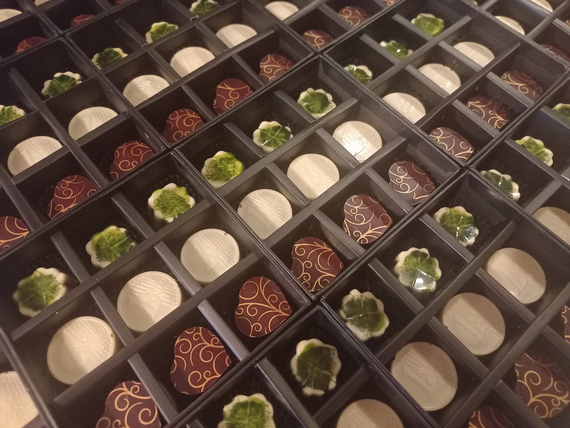 Glück, Liebe, Gesundheit und finanzielle Freiheit, das sind die süßen Wünsche dieser Pralinenmischung, die dich als wohlschmeckendes Kleeblatt, Münze und Herz erwarten – für deine Liebsten oder um dich selbst zu beschenken. Mit diesen handgefertigten Konfektstückerln steht einem guten Start ins Neue Jahr eigentlich nichts mehr im Wege! Folgende 3 Sorten begleiten dich beim Jahreswechsel:
