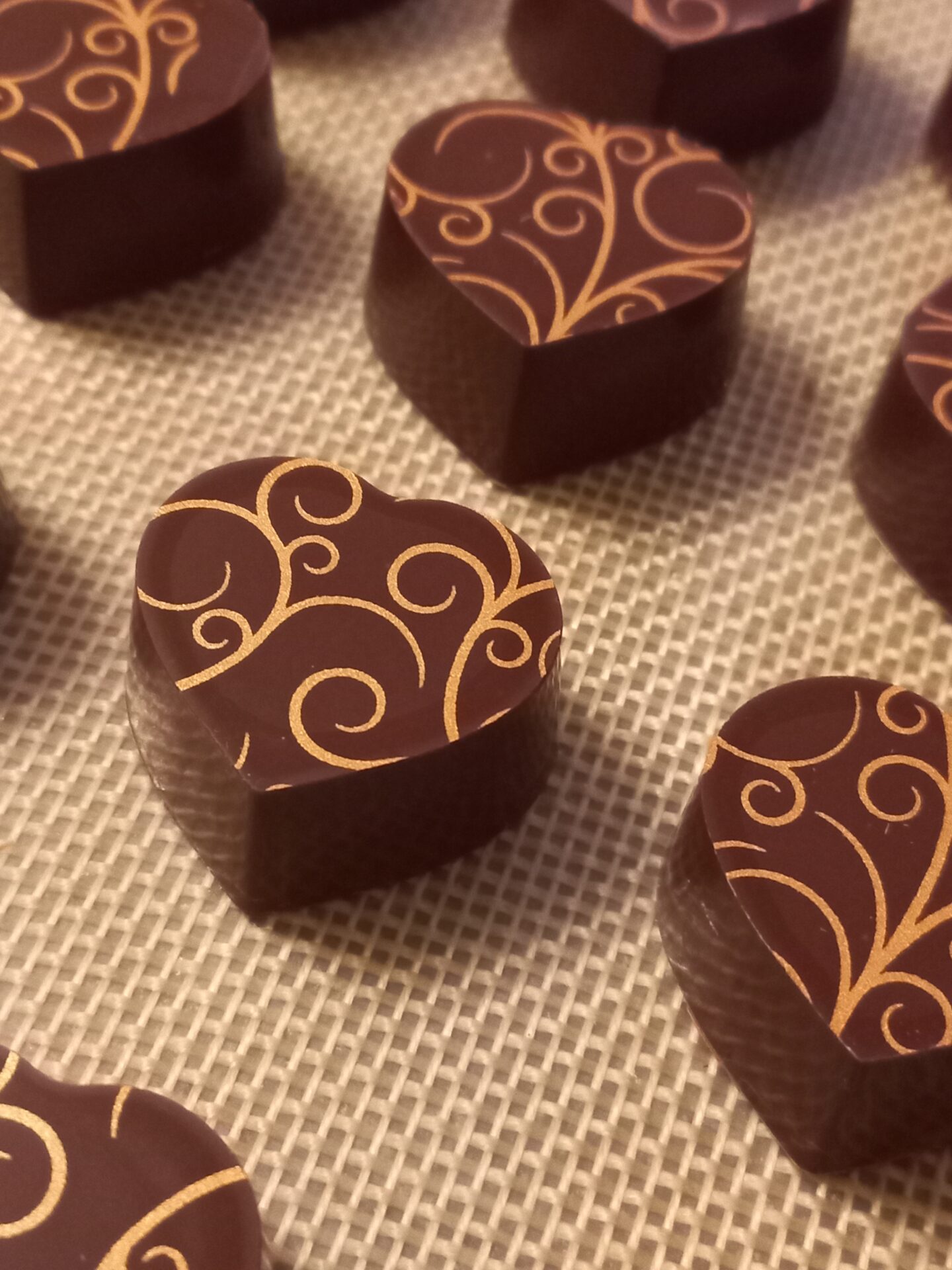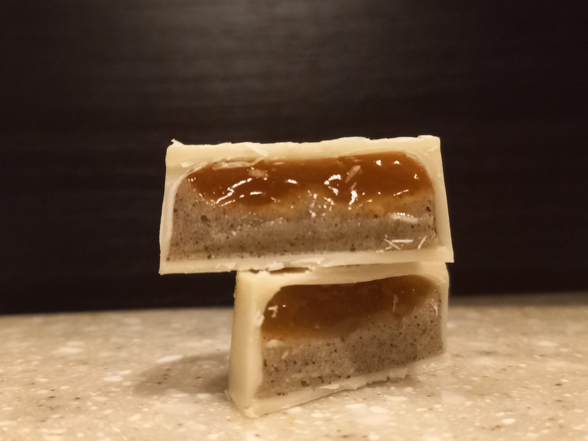 - Maracuja-Vanille: ein säuerlich fruchtiges Maracujagelee in Kombination mit einer traumhaften Vanilleganache, vereint unter einer dünnen Schicht weißer Schokolade