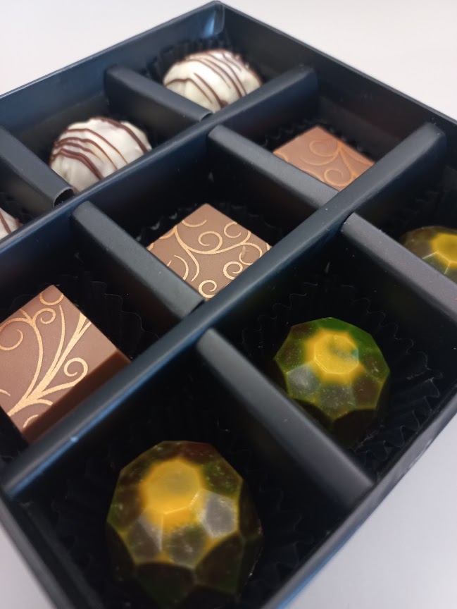- Cointreau-Karamell: zart schmelzende Bitterschokolade mit einer milden, karamelligen Cointreaufüllung