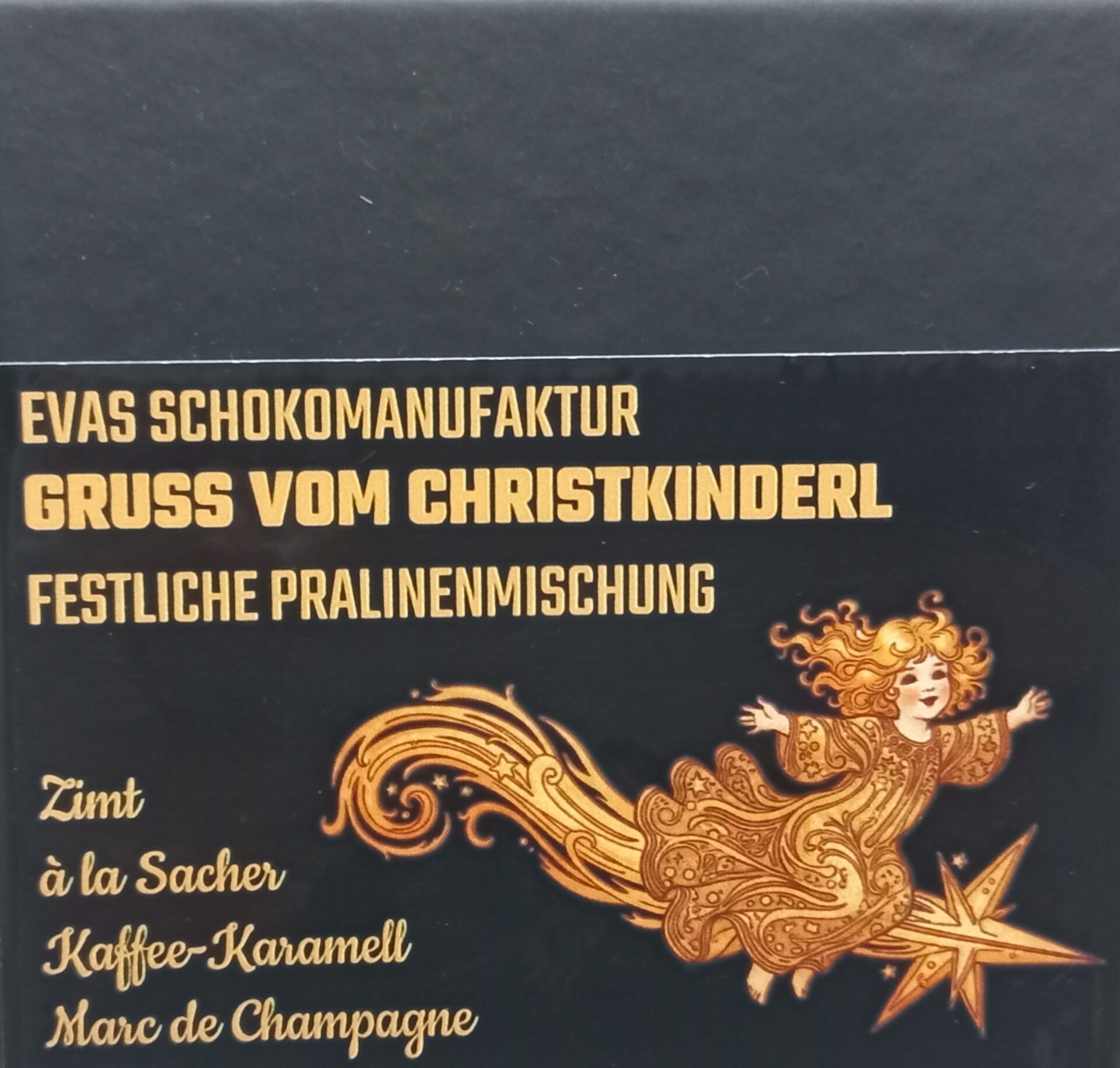 Du möchtest einem ganz besonderen Menschen ein Geschenk vom Christkinderl überbringen lassen, dem kleinen, süßen, auf Sternschnuppen fliegenden, weihnachtlichen Gabenbringer? Dann ist diese Pralinenmischung wie gemacht für dich! Das Christkinderl hat 4 festlich weihnachtliche Sorten in die Schachtel gepackt: